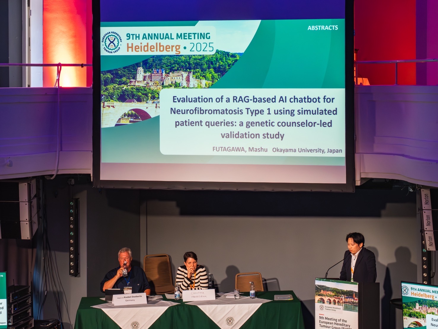 2025年9月19日から21日にハイデルベルグ (ドイツ)にて開催された第9回欧州遺伝性腫瘍会議(9th Meeting of the European Hereditary Tumour Group:EHTG) において、二川摩周(特任助教・認定遺伝カウンセラー)の研究成果「Evaluation of a RAG-based AI Chatbot for Neurofibromatosis Type 1 Using Simulated Patient Queries: a Genetic Counselor-Led Validation Study(神経線維腫症1型の疑似患者質問集を用いたRAG-based AI(外部拡張生成AI)チャットボットの評価:認定遺伝カウンセラー主導の検証研究)」が口頭発表に採択されました。